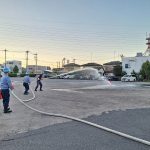 従業員全員ではありませんが、何人かに実際に消火栓を使用していただきました。