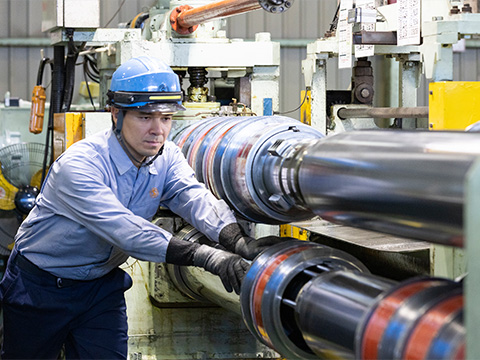 母材コイルと呼ばれる大きなコイルをクレーンで扱うには国家資格(クレーン免許)が必要です。免許取得は会社がサポートしており、年々取得率が高まっています。