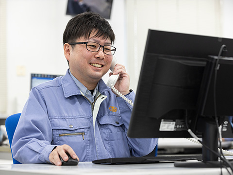 ご注文内容に基づいて、切断や溶接を行った加工製品を手配するのが主な業務です。お客様とのやりとりが多いのはもちろん、社内への加工指示や納入指示など現場との連絡や調整も頻繁に行います。